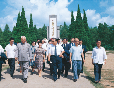 向革命烈士献花后一行离开南京雨花台
