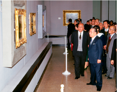 “站在战争这一武力的对立面的是文化,我认为文化、艺术是生命欢喜的表现。”[2]池田深知文化艺术能振奋人心、陶冶性情。他创办的东京富士美术馆,于北京的中国美术馆举办“西洋绘画名作展”。池田出席展览,江泽民总书记更亲自挥毫写下展览的名称。中央人民广播电台报导了在开幕剪彩时的访谈片段,其中在回答这次展览的意义时,池田答道︰“今年春天,江泽民总书记在访日时和我谈到,该如何庆祝中日邦交正常化二十周年佳节。我便提议召开这个西洋绘画名作展,作为两国文化交流的一环,而总书记也非常高兴地当场同意了。”