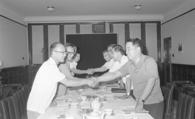 公明党代表访中时于北京与中国代表拟定《共同声明》的草案