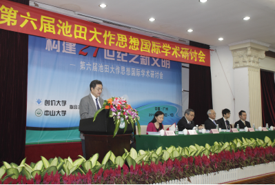 由中山大学与创价大学联合举办的第六届池田大作思想国际学术研讨会,11月6日至7日间,以“构建21世纪之新文明”为主题在位于广东省的中山大学召开。计有来自亚洲各地的65所大学、研究机关约200人出席。会上共发表了50篇论文,就池田先生的文化与和平主义、人本教育等思想进行探讨。