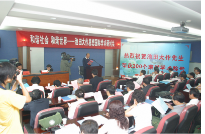 为纪念池田先生与英国著名历史学家汤因比博士对谈集《展望二十一世纪》发行30周年、中文版发行20周年,北京大学日本研究中心“池田大作研究会”与创价大学共同主办的国际学术论坛,10月14日在北京大学资源集团大厦召开,共有来自11个大学的47名学者出席。该会议也含有庆祝创价大学通过认可于北京设置办事处的意义在内。